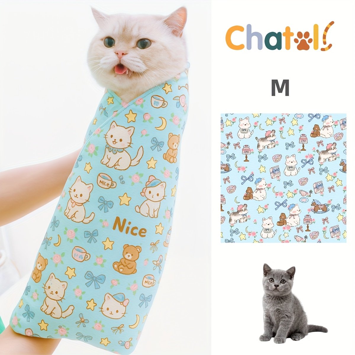 Écharpe de Toilettage pour Chat – Couverture de Protection pour Animaux – Tissu Enveloppant pour Chats – Idéal pour Médicaments, Prévention des Grattages et Évasions, Nettoyage Facilité – Serviette d’Enveloppement pour Chat
