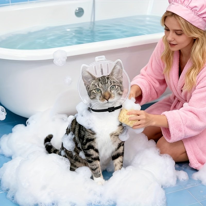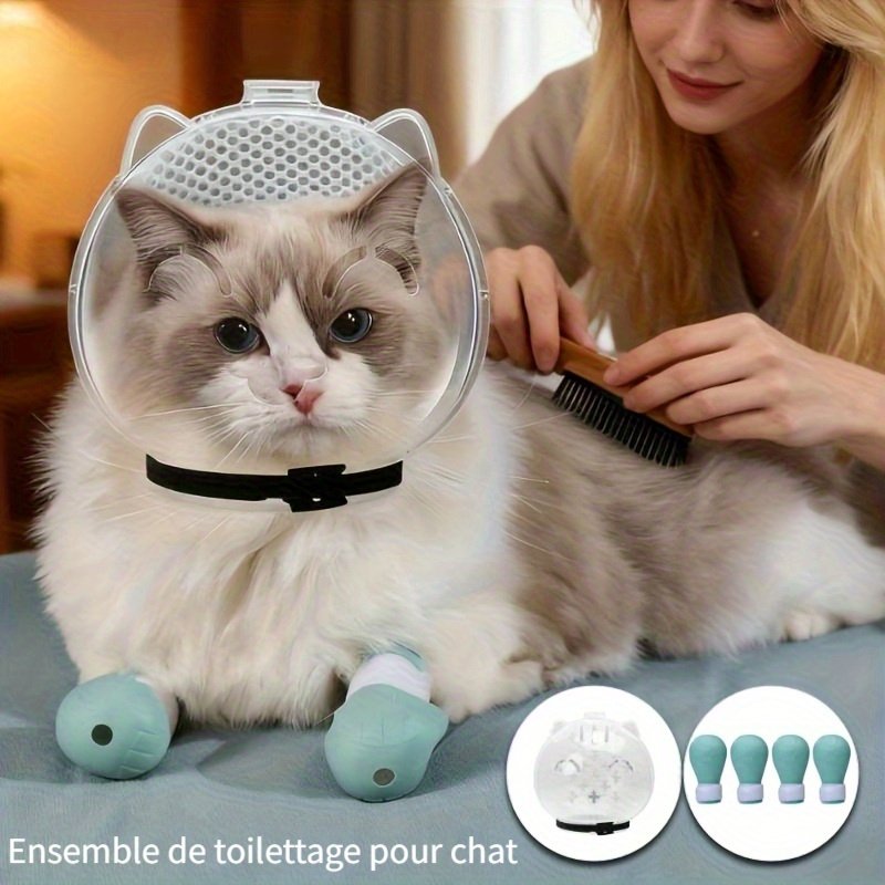 Ensemble de protection pour chat, collier Elizabeth transparent et respirant, comprenant 1 protège-tête et 4 protège-pattes, -léchage et -morsure, spécialement conçu pour le toilettage et le bain, durable et réutilisable
